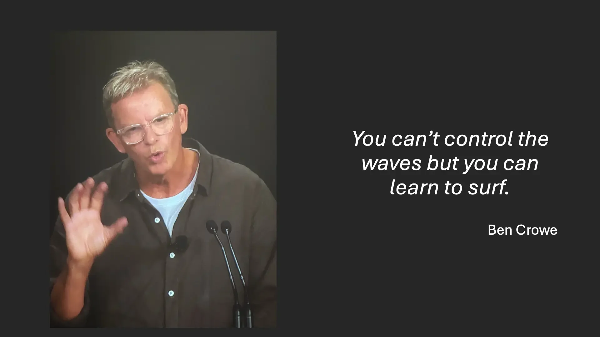 ‘You cant’ control the waves, but you can learn to surf.’